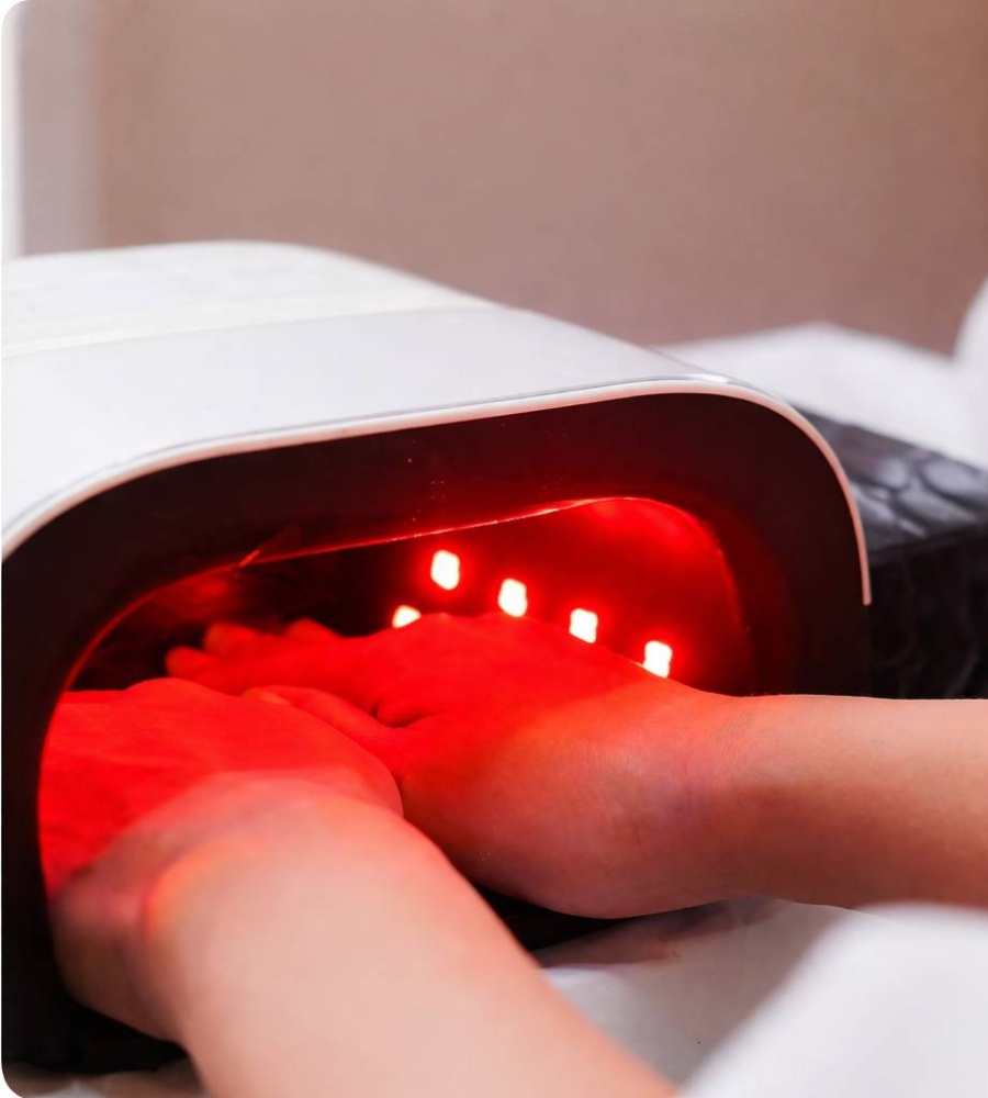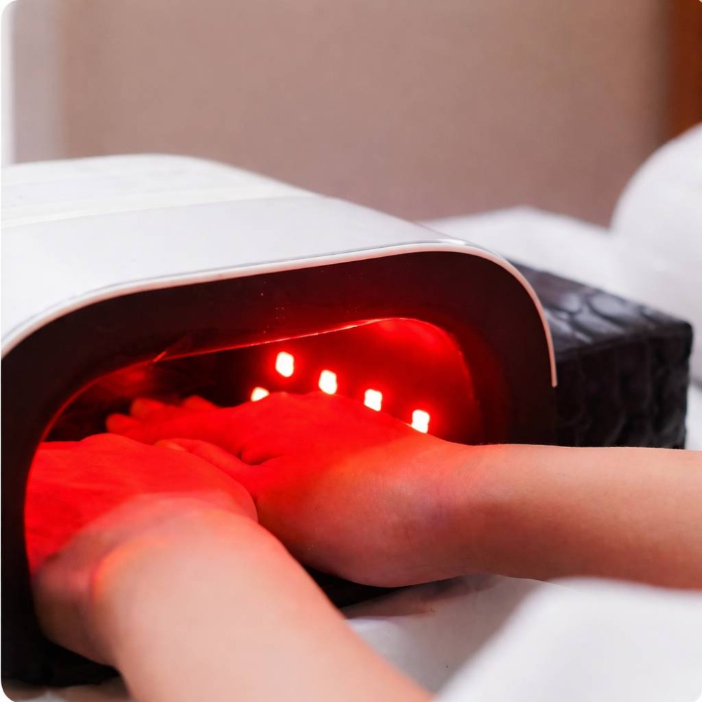 ハンドケア松にネイルケアをプラスし、メデイライトでより美肌・爪の状態を整えます